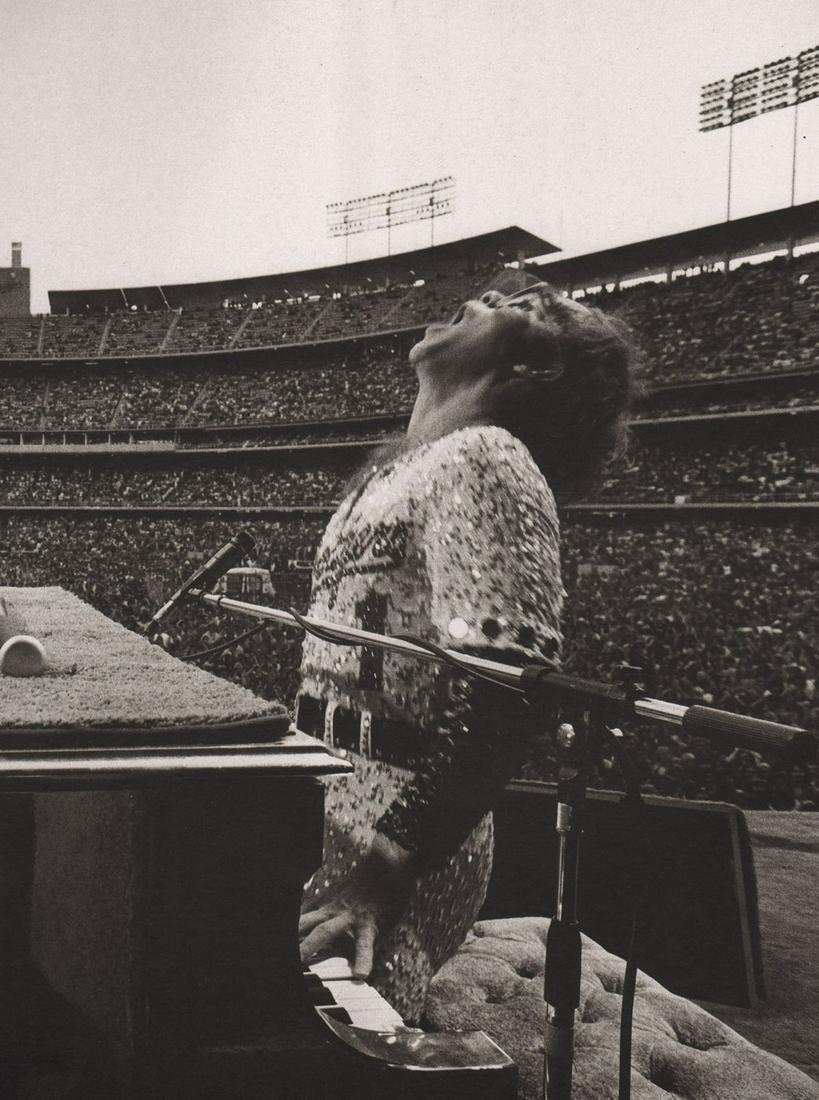 On october 25 and 26, 1975, elton played two shows at the dodger stadium in los angeles, the first musical act to perform there since the beatles nine years earlier.